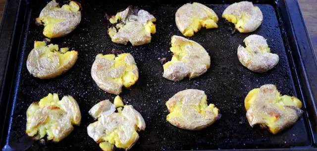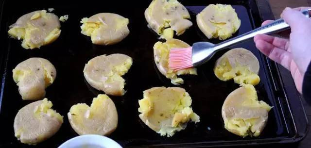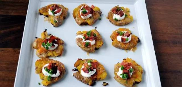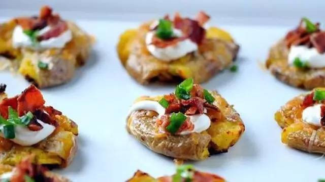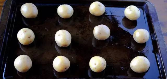 大概20个小土豆、1/3杯橄榄油、1杯车打芝士、海盐、1/4杯炒好的培根碎、1/2杯酸奶油、1/4葱(切成葱花)