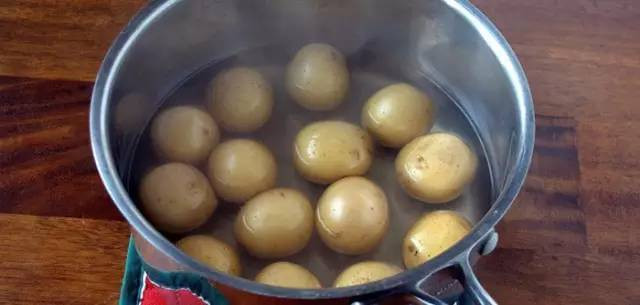 1、水中加入盐,煮沸后放入洗净的土豆,煮大概15分钟至质地变软,叉子可以轻松插入即捞出沥干水。