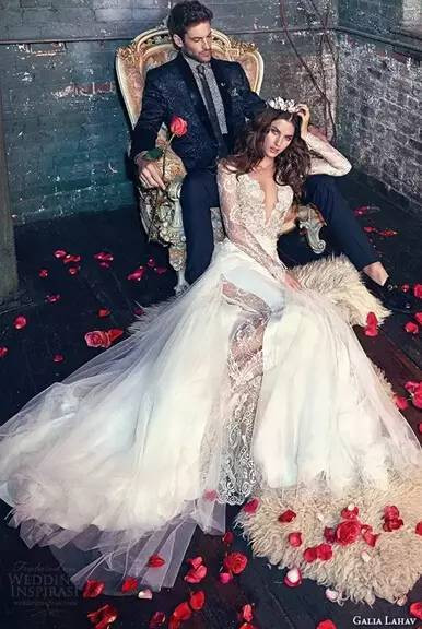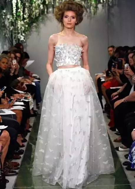 上下分层的婚纱打破了传统婚纱礼服one piece的概念,不仅时髦休闲,而且新娘们穿上它,还能显露下小蛮腰,展现女人味。