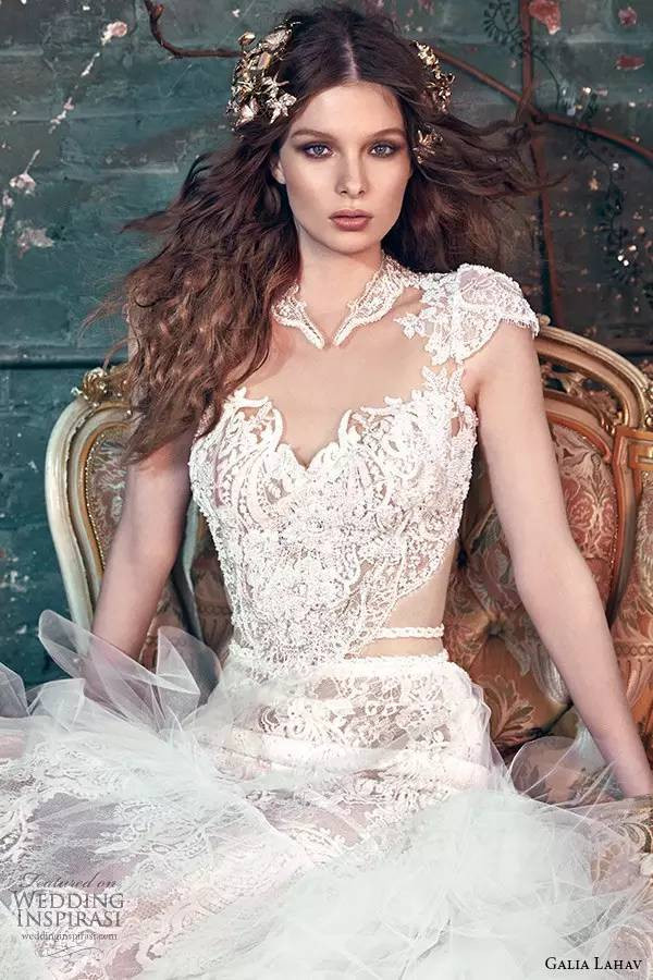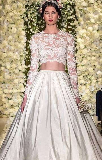 从材质上来看,蕾丝婚纱可以说是永不过时的潮流。当下,浪漫的蕾丝婚纱依旧是各品牌秀场上的最大主角。蕾丝体现的是浪漫气息的特质,并且相当华丽优雅,仍谁都无法抵挡这股潮流之风。