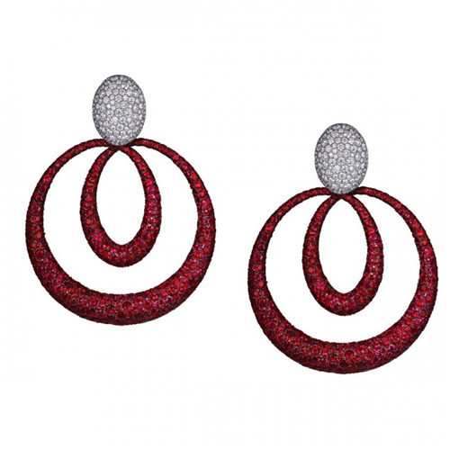 Jacob & Co.红宝石、钻石、玫瑰金圆形耳环