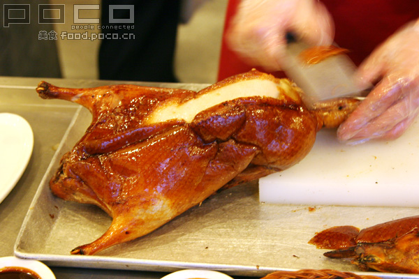 严格来说,一只烤鸭要片出108片,才是刀工技法到了火候。现在知名烤鸭店的片鸭师傅,讲求每只鸭子能片出90片以上,不低于9两肉。现时有三种片法:传统的片法是皮肉不分,每一片都要连皮带肉,包括片成条状的柳叶片、片成片状的鱼鳞片两种:第三种是今年才有的皮肉分离片法。