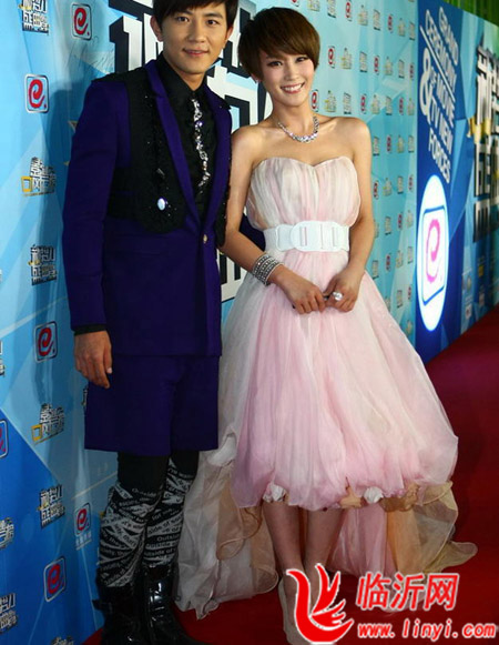 谢楠穿着一条粉色雪纺公主裙去当主持,白色的腰带使裙子更有曲线美感,华丽的配饰更是闪闪发亮。