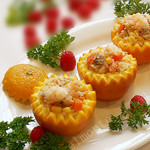 7. 把馅料分装入橙子内。