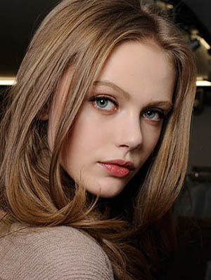醒目的金发,同样搭配一款露额发型,动感的小脸很俏丽。