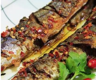 3、将鱼两面煎熟,出锅前一分钟撒些孜然和辣椒粉。