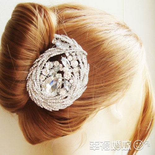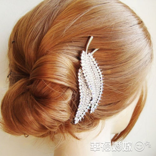 布满水晶的银叶发饰典雅贵气
