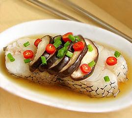 4、把鳕鱼放入盘中,把切好的香菇片摆在鳕鱼上,均匀的浇上调制好的味汁,放入蒸锅大火蒸6分钟,然后关火,打开盖子,撒入红辣椒碎、香葱末,再盖上盖子焖2分钟就可以了。整个制作过程如此简单,不需要加油,不需要动用你的过多厨具,轻轻松松就可以享用到健康美味的小菜。