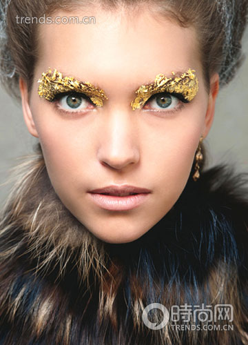 圆形的金箔贴在眼睑的中央,简约却不简单;还有那些金箔就像纹身贴纸一样,纹理每个都不尽相同。