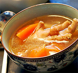 3、如果是慢炖锅的话,花生和鸡爪同时放进去,木瓜块起锅前提前半小时放入。如果用的是砂锅或者其他什么锅(最好是砂锅),花生起锅前一小时放,之后40分钟后放木瓜块。因为慢炖锅的火小,所以材料都放的早,如果是燃气灶的话,火比较大,材料就需要后放