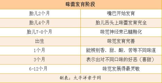 其次,太早接触重口味的食物,会破坏宝宝的味蕾发育,导致偏食挑食。婴幼儿时期是宝宝味蕾发育和口味偏好形成的关键期,3个月大的宝宝就会表现出对不同口味的好恶,尤其喜甜,太甜的奶粉除了损伤味蕾,还会让宝宝对甜味产生依赖。