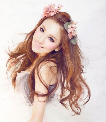 小编点评:甜美的女生也可以尝试一款披肩长卷发的新娘发型,将刘海扎成蓬蓬状,然后佩戴芬芳淡雅的花朵做成装饰,让幸福也像花儿一样绽放。