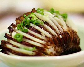 1、腊肉用开水煮熟,切成0.5cm的片,底部不要切断