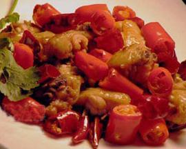原料:鸡翅8两,红辣椒2两,干辣椒1两