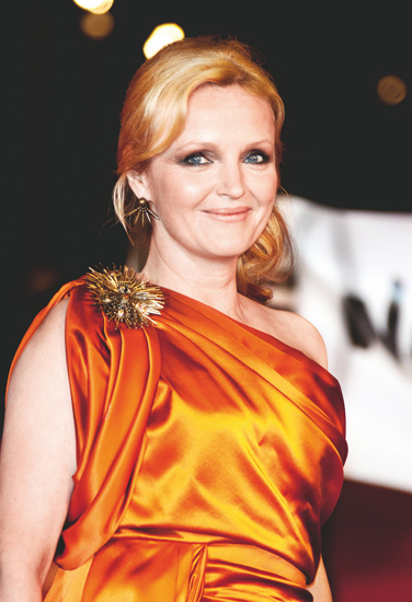 其实将胸针佩于右肩,正是胸针最古老的用法之一。Miranda Richardson 用这枚夸张的胸针与古希腊风格的服装相搭配,极具成熟魅力,但胸针的金色与晚装的橙色过于相似,有些削弱了视觉冲击力。