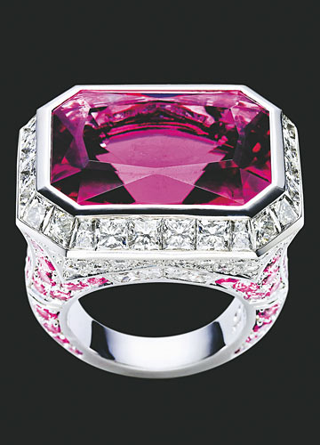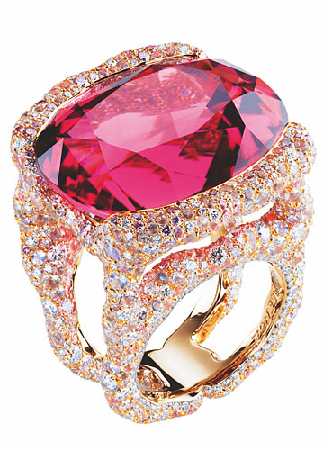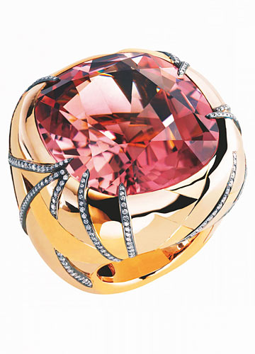 “Cocktail Ring”是20 世纪五六十年代美国禁酒令颁布后,叛逆的上流社会私办带有酒精饮料的Party,女士们在参加昏暗的鸡尾酒Party 时的佩戴高调的大宝石戒指以寻求异性关注。