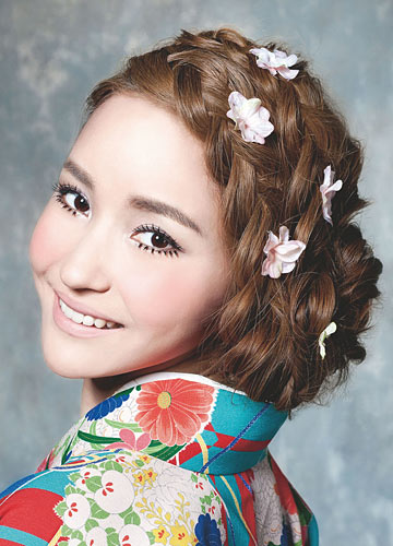 夏季较炎热,所以你可以用轻快一点的颜色,栗色、金棕色都是比较明亮的颜色,再加一些今年流行的金色挑染。当然黑色是亚洲新娘永恒不变的流行色,黑色头发上用暂时性的染发产品做一些红色的艺术片染,还可以搭配活泼的红色小礼服。