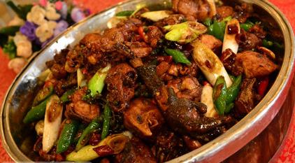 特色炒鸡:精选优质鸡肉,剁块后加入丰富调味品大火爆炒,鸡肉略带焦香口感鲜嫩,酷辣辣的滋味深入人心,百食不厌。