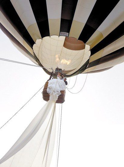 17岁的罗马尼亚模特艾玛·杜米迪斯古在布加勒斯特穿着婚纱登上热气球升到空中,长长的裙摆随风飘逸,令人惊叹。这件婚纱的裙摆长达1.85英里(2977米),打破吉尼斯世界纪录。