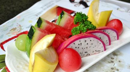 水果拼盘:清香脆口的时令水果淋上浓郁的香甜沙拉酱,咔嚓咔嚓的咀嚼声响带来的是一抹嘴角上扬的快乐。