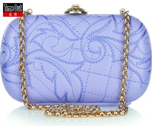 柔和的色调在这个季节最受欢迎,淡紫色的手包用奢华的皮质制成,精美的刺绣看起来华丽优雅,适合典雅的长摆绸缎婚纱。