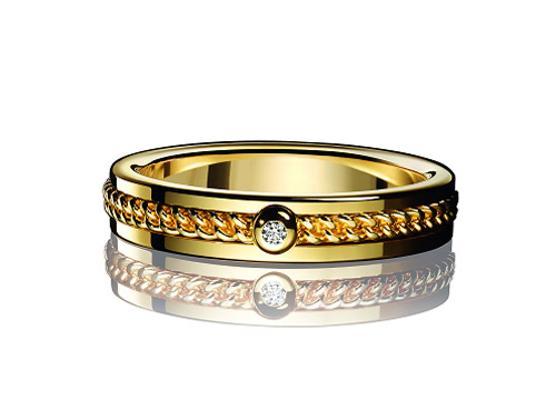 三环圆弧的线条朴质而利落,却拥有丰沛而温润的情感——三色金环分别寓意爱情、友情和忠诚。作品中内蕴的人文情感传递给多有有故事的人,爱情、友情和忠诚,这些至真至纯的情感才是疲惫心灵最终的归宿。只有以真挚的情感,将爱人、家人和朋友牢牢维系在自己身边;只有收获爱情、友谊、忠诚这些触及心灵的情感慰藉,人生,才能真正充满意义。