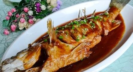 红烧鲈鱼:鲈鱼不仅味道鲜美而且营养价值极高,经常食用可滋补身心有益于肝脏,红烧鲈鱼肉质细腻异常,馥郁香浓,实属鱼中上品佳肴。
