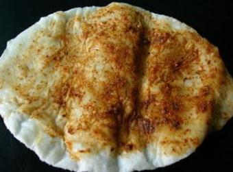 (2)特制平底锅上火烧热,用净纱布蘸油抹锅,倒入米浆,端锅一幌,使米浆 遍布锅面,上火加盖,到底面烙至淡黄色时取出。依此法再煎米浆粑粑1个,至底面 烙黄时,用手铲将粑粑翻身,面上磕入鸡蛋1个,盖上1个白色面米浆粑粑,至蛋面呈 黄色时,用手铲把粑粑翻身,然后取出折成形如半月的饼即可食用。
