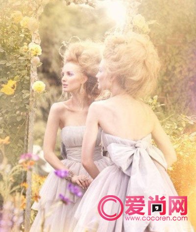 小竖领和特别的肩部设计,蕾丝手套、珍珠耳环、胸前的金属扣下的蝴蝶结,以及新娘头上的水晶皇冠,无不让这款婚纱充满了复古的端庄和高贵之感,新娘如同从上个世纪里穿越而来的名媛淑女,那么的圣洁高贵而动人。