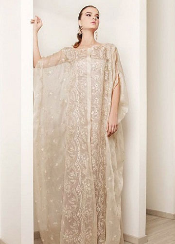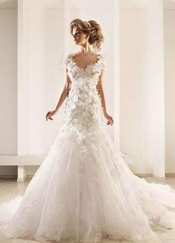 Rami Kadi2012婚纱大量运用好造型的欧根纱,塑造出华美的大裙摆。并且裙摆十足的分量感与紧裹的上半身形成强烈的对比,凸显新娘完美曲线。褶皱的运用炉火纯青,在塑造出丰满的胸部曲线同时在腰部收紧,玲珑有致,令人羡慕。虽然极其重视装饰细节,但却简洁大方,并没有小而密的繁复之感。另外,唯美粉彩色的运用则增加新娘的可爱度,华美是必要的,但绝不要老气哦。