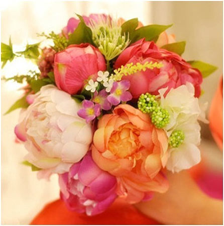 花毛茛:光彩照人的魅力。想让你的新郎知道你如何迷人吗,用一束红色和橙色的花毛茛,充满浪漫的褶边,这些漂亮的花整齐的插到一起的时候,最好看。