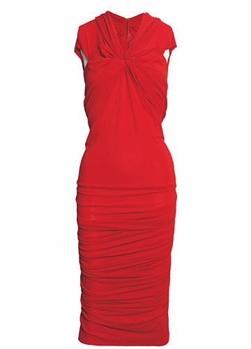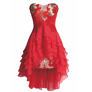 2. 红色装扮最为性感热辣,但深V紧身剪裁设计的礼服裙,不宜出现在婚礼派对上。