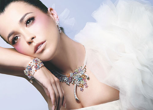 在新的一年开启新的旅程之际,充满了欢乐和激情,让绚丽的彩色宝石加上夸张的美丽造型,伴随完美曲线释放出动人的魅力,让新娘在婚堂和派对上都大放异彩。