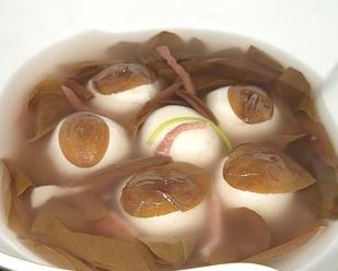 1)将超时里买来的瓶装莼菜,倒出洗浸15分钟(因为现在还没有新鲜的莼菜.所以就用瓶装的代替.等过一些日子新鲜的莼菜上市时,用新鲜的纯菜做汤则菜绿色泽味道更佳)