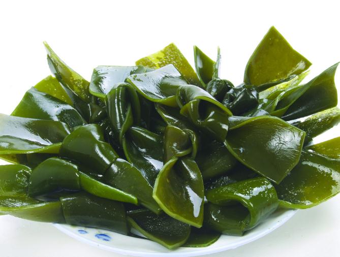 味咸,性寒,具有消痰平喘、排毒通便的功效。海带富含藻胶酸、甘露醇、蛋白质、脂肪、糖类、粗纤维、胡萝卜素、维生素B1、维生素 B2、维生素C、尼克酸、碘、钙、磷、铁等多种成分。尤其是含丰富的碘,对人体十分有益,可治疗甲状腺肿大和碘缺乏而引起的病症。