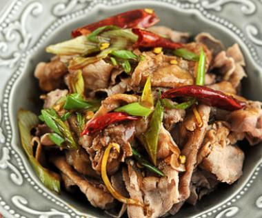 原 料:肥牛200克,大葱4段,姜片2片,干辣椒3-5个,葱姜丝少许,料酒1汤勺。