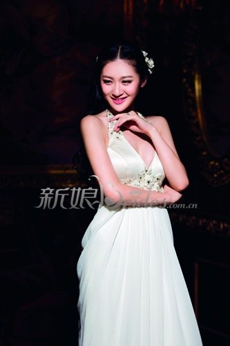 受到怀孕的生理影响,孕期的新娘们往往胸型较好。深V的礼服将视觉焦点集中至最美的部分。高腰线以下的褶皱可以掩饰稍显隆起的曲线。