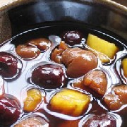 2、将桂圆肉、菠萝肉、红枣一同入锅,加水800ml,旺火煮沸后再改用文火煨l~2小时;