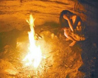 梁小姐在微博中晒出在山洞取火的照片。