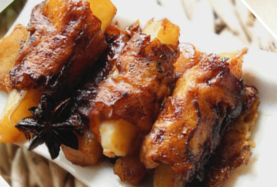 5  将土豆塞入油条中,素排骨的雏形就完成了
