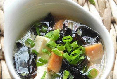 3. 木耳泡发,切小块。(木耳用煮熟的米汤泡发,口感最好)