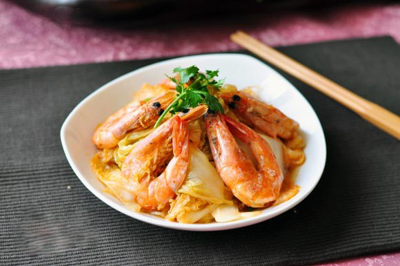 鲜虾炒白菜的做法: