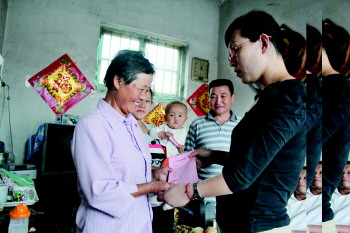 公司领导还能走进普通员工的家里来看看?!真的吗?左邻右舍邻居从开始的怀疑到后来的确定,他们纷纷投来了羡慕的目光,这在徐勤永的家里是第一次,在村里也是第一次。看到领导和家人促膝交谈,徐勤永傻呵呵地笑了。