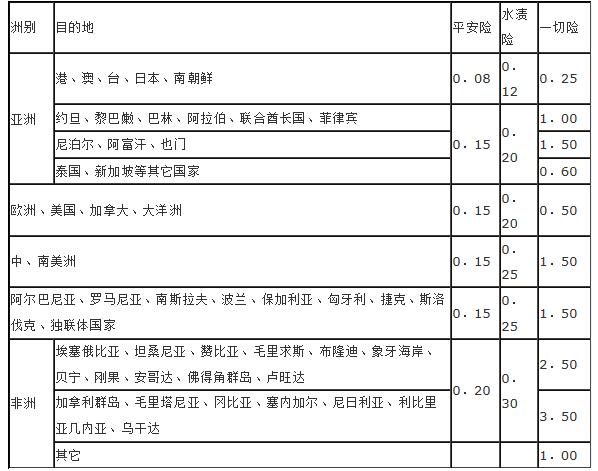 (一) 所有自我国出口至世界各地货物的费率,均按本费率表计算,但如在指明货物费率表中列明的货物,承保一切险时还须加上指明货物费率计算保险费,有特殊规定的按特殊规定计收。