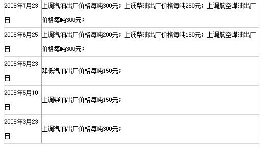 油价历次调整情况一览表: