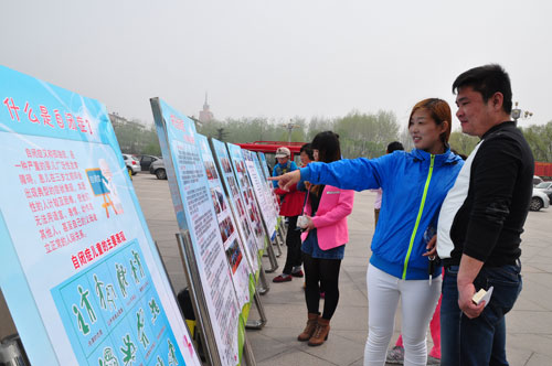 在活动现场,笔者见到了一群参加蓝色骑行的志愿者,负责人说他们是通过网络的渠道了解到今天的活动的。经过与罗庄区爱之旅中心孟校长的沟通,他们决定以骑行的方式参与蓝色行动,骑行队伍身穿蓝色T恤,自行车上系着蓝色气球,从临沂市人民广场出发,经沂蒙路、金雀山路、通达路、通达南路、湖北路等市、区人流密集的主干道,历时一小时到达罗庄区人民广场,他们希望通过这种方式唤起社会人士对于自闭症儿童的关爱。