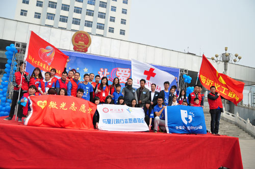 临沂网网讯:3月29日上午,在世界自闭症日来临前夕,由山东省临沂市罗庄区残联、李连杰壹基金、临沂罗庄区爱之旅儿童发展中心、临沂义工联盟、微光志愿者、临沂爱心零距离志愿者协会、临沂大学星儿同行志愿者协会、临沂市红十字志愿服务队等单位联合举办的 “把爱传出去——临沂罗庄区爱之旅关爱自闭症儿童宣传倡导活动”在罗庄区人民广场举行。活动中,200余名志愿者以点亮蓝灯、盖上蓝印章,穿上蓝体恤,立蓝色展板,挂蓝气球、蓝色骑行、爱心义卖等活动,把对自闭症儿童的关爱传递给广大市民。