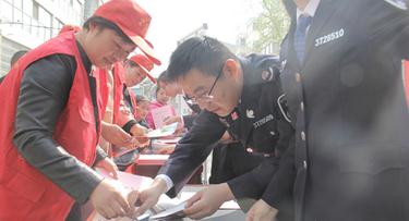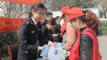 工作人员向市民宣传环保知识