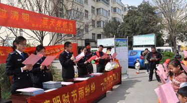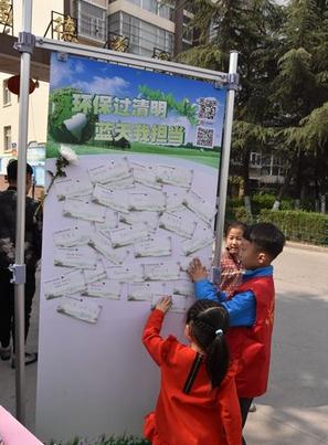 为全面贯彻落实中央、省文明办工作部署,弘扬中华民族传统美德,配合移风易俗工作顺利开展,引导全社会广大群众文明祭扫,环保祭祀,由临沂市文明办、临沂市环保局主办,临沂市环保局兰山分局协办,金雀山街道傅家屯社区承办的“环保过清明,蓝天我担当”文明祭祀系列宣传活动今日在福德花园小区举行。