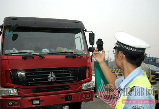 民警在检查驾驶员证件。